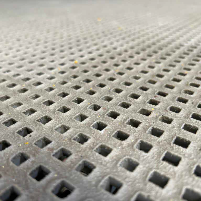 We provide a diverse selection of Mini Mesh FRP grating in varying colours, thicknesses, and resin types. We offer our mini mesh grating panels in various standard sizes, with the most popular size being 1247 x 3687mm, which is specifically chosen for the most optimal panel layout. Additionally, all of our listed products are available in both isophthalic and Vinyl Ester Resin options. Our mini mesh gratings come with a mesh size of 19 x 19 mm, and a hole opening of 12 x 12 mm.