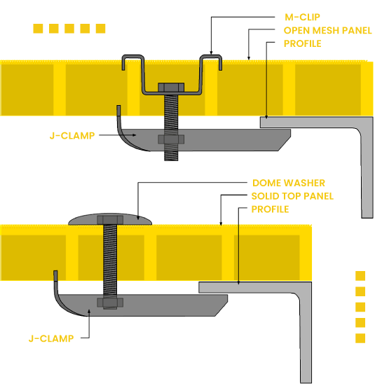 - For use with Open Mesh, Solid Top Panels, Flat Plate and for snag-free GRP structures