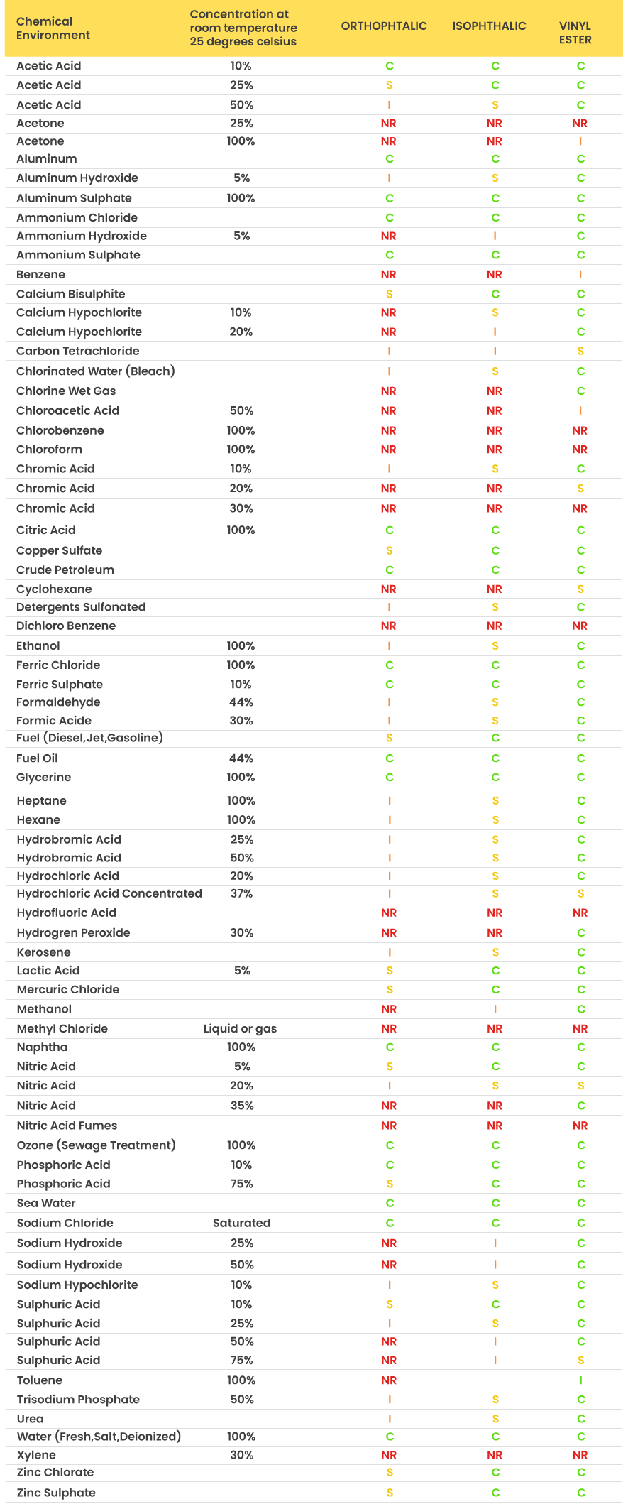 We offer our products in both Isophthalic and Vinyl Ester Resin to meet varying requirements.